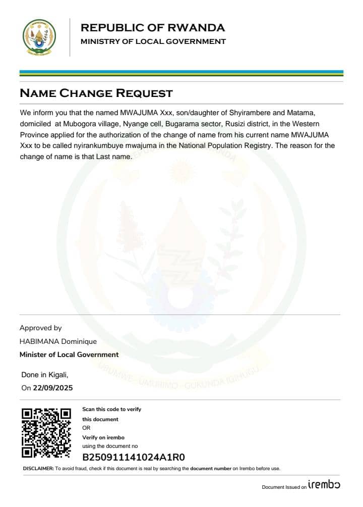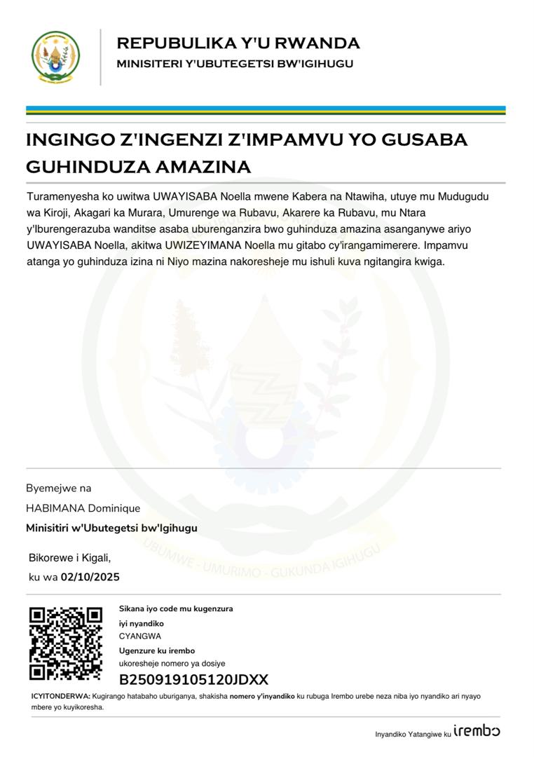 ITANGAZO RYA UWAYISABA Noella RISABA GUHINDURA AMAZINA